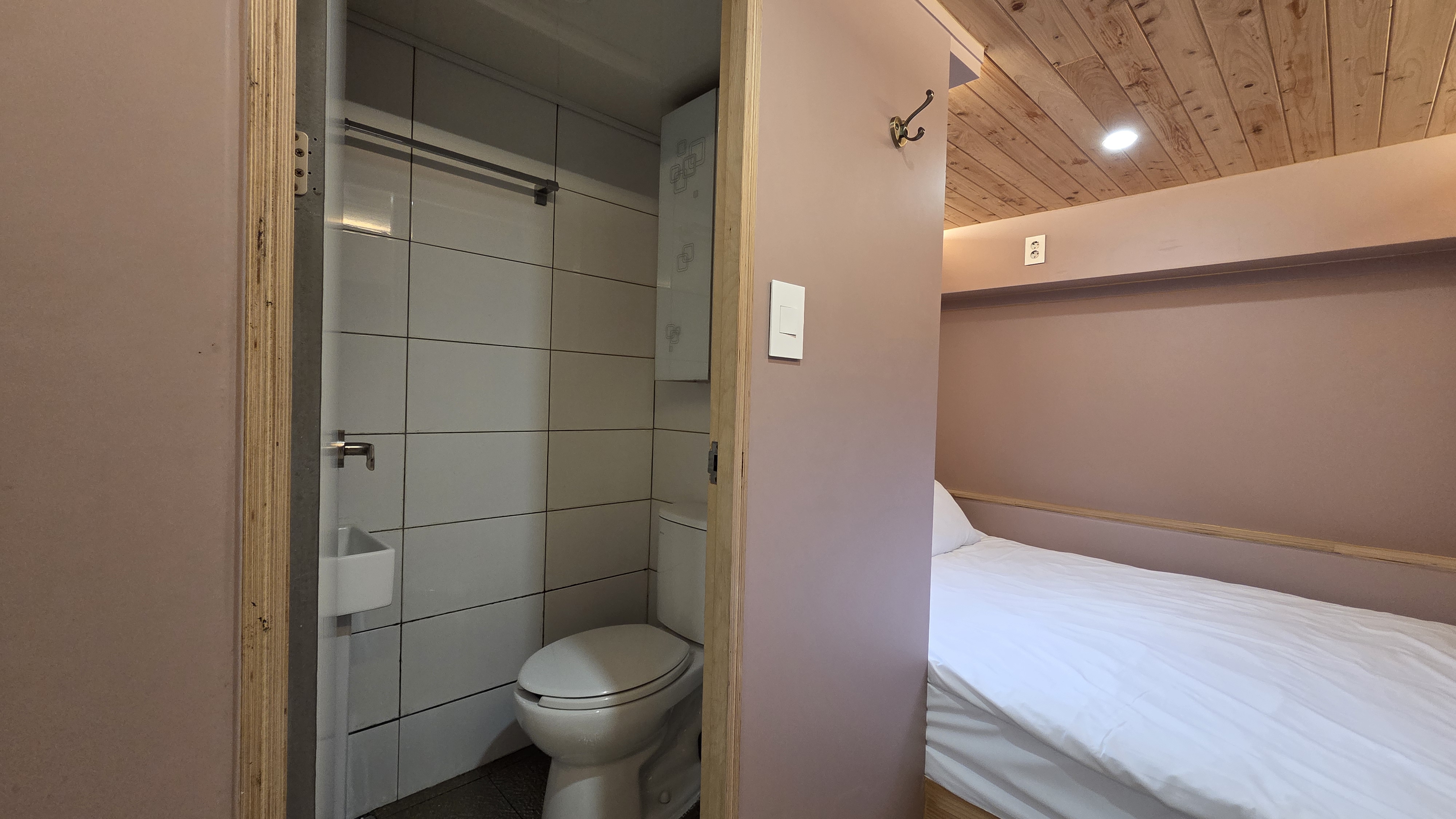 다만, 좀 많이 좁습니다. 성인 샤워는 야외 샤워실에서 하는게 편해요.