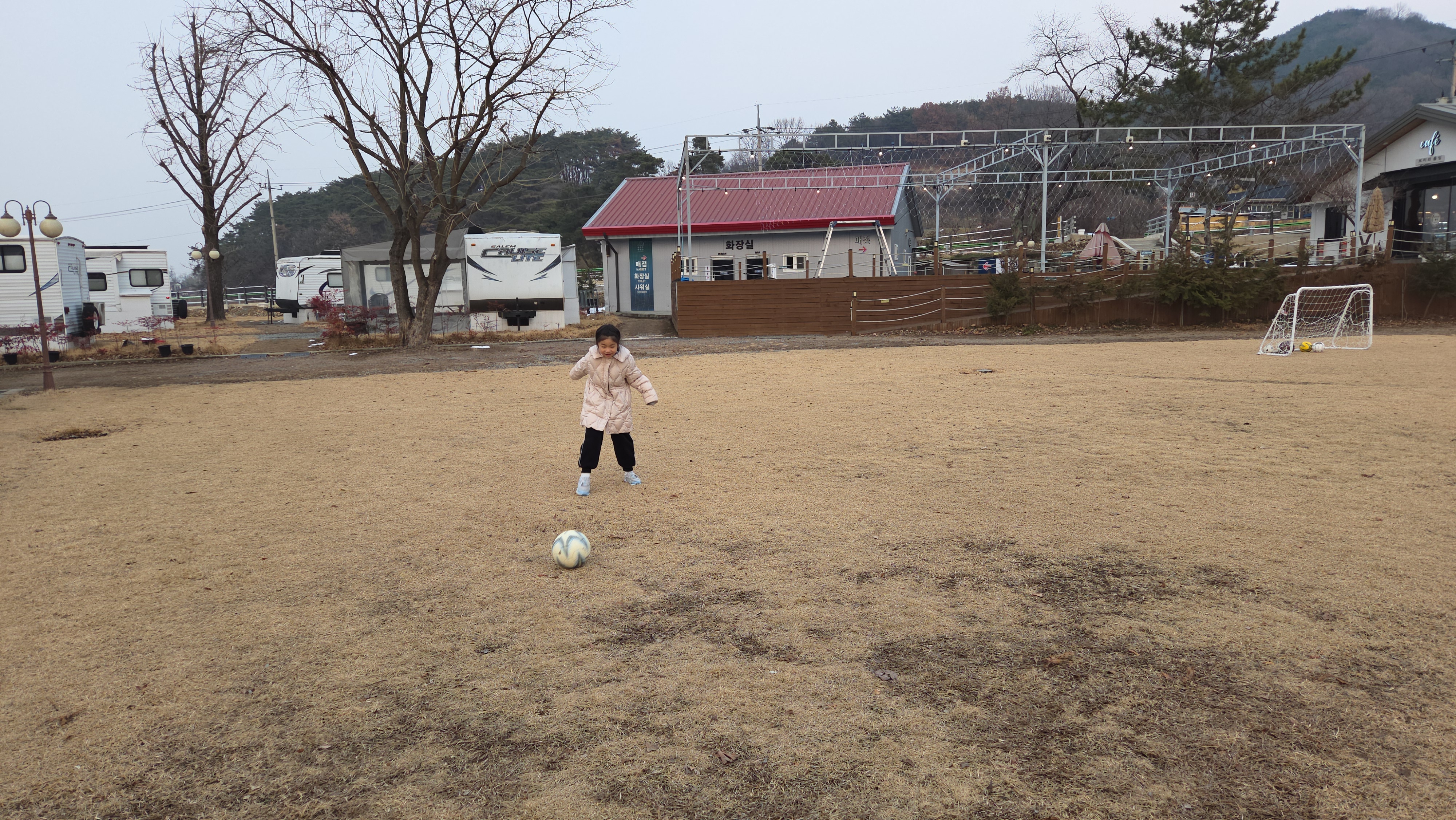 하더니 신나게 공을 몰고 차면서 놀았답니다.