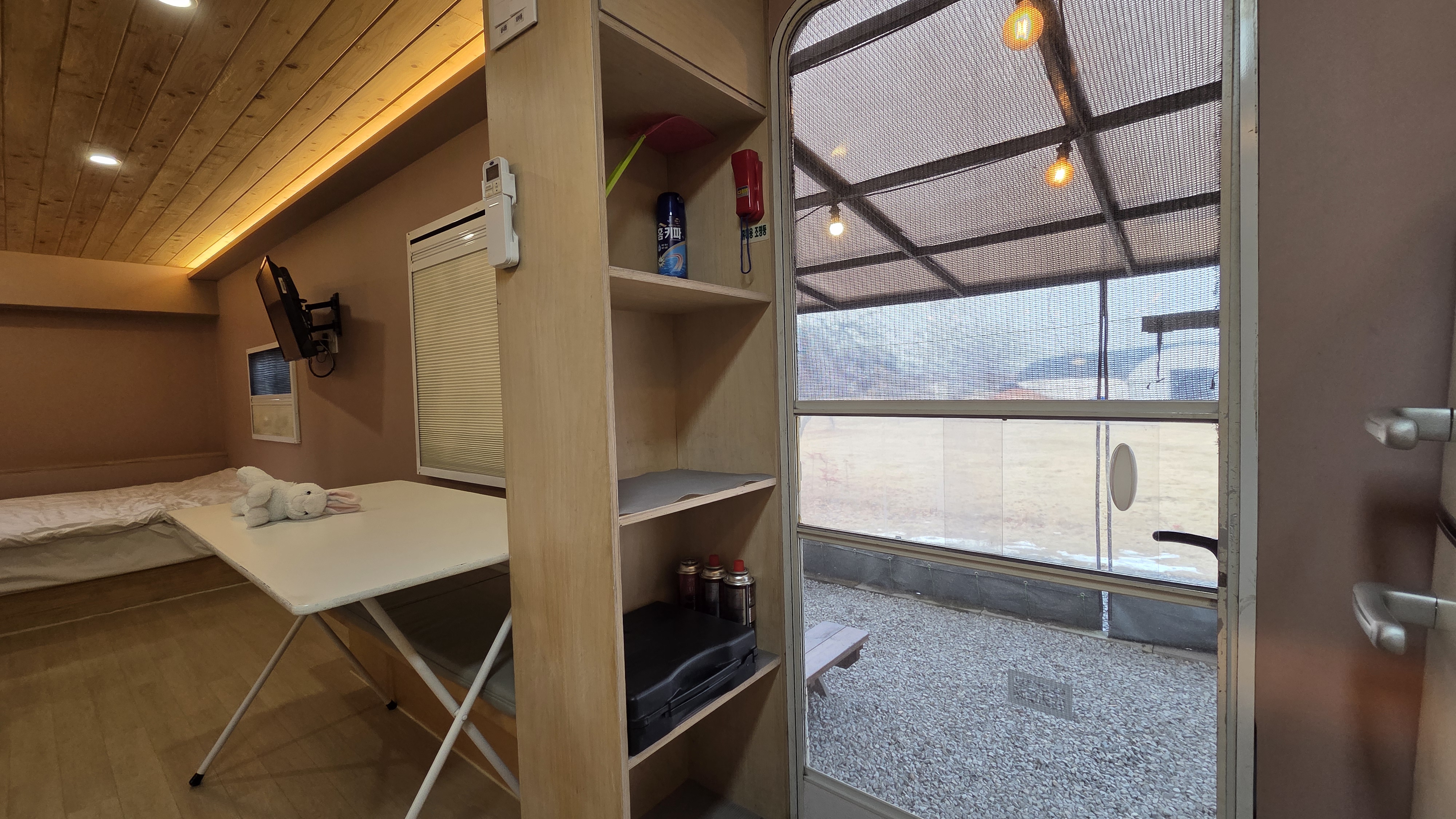 목공 시공을 한 번 더 해서 외풍은 전혀 없고, (그래서 카라반이기 보다 펜션 느낌도 있어요.)