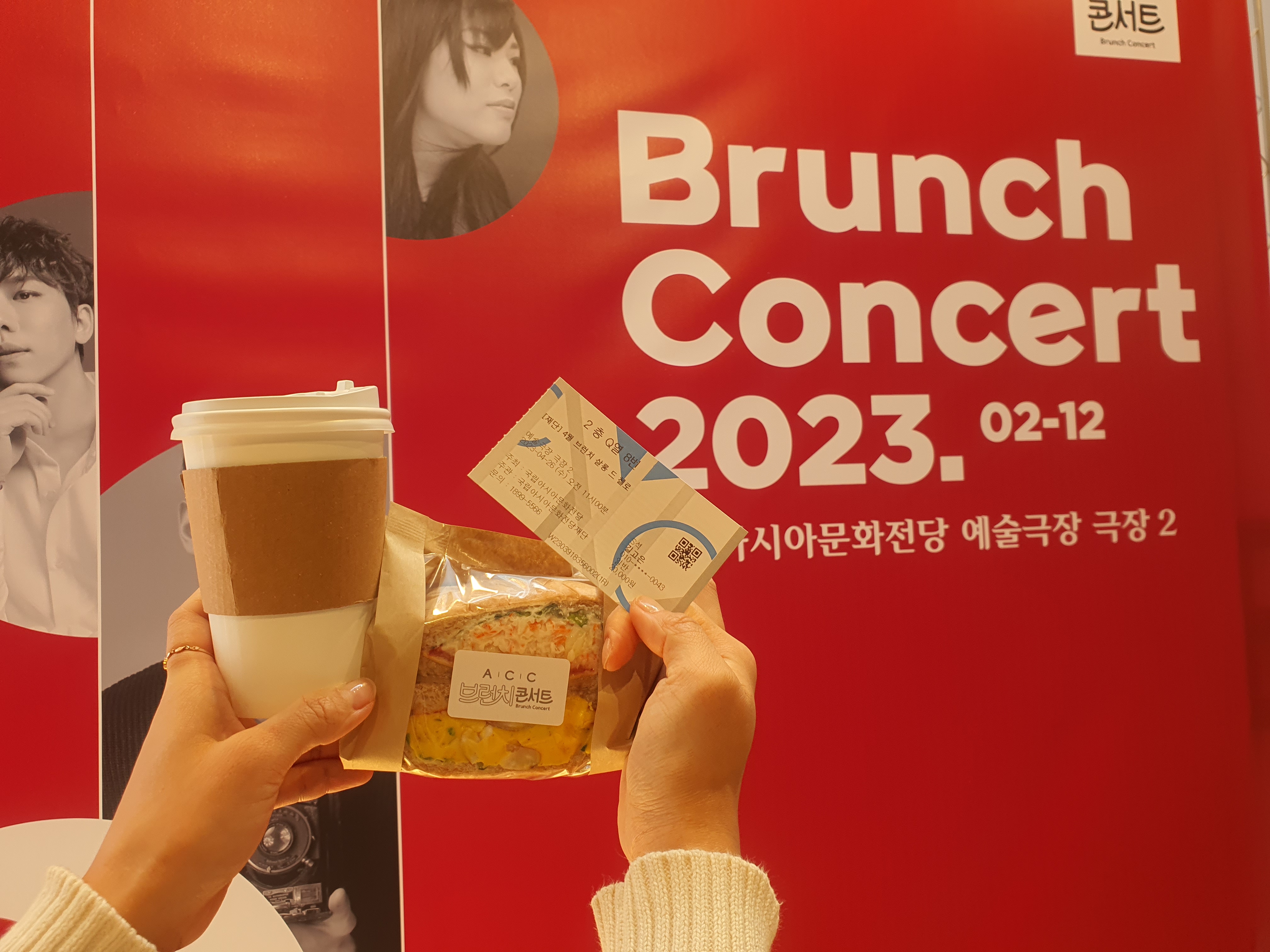 브런치 콘서트가 끝나고 돌아가는 길에 미리 준비된 샌드위치와 커피를 받아갈 수 있어요. 그리고 예술극장 실내 곳곳에 있는 테이블이나 ACC 외부 광장 어디에서든 여유를 가지며 브런치를 즐길 수 있답니다.