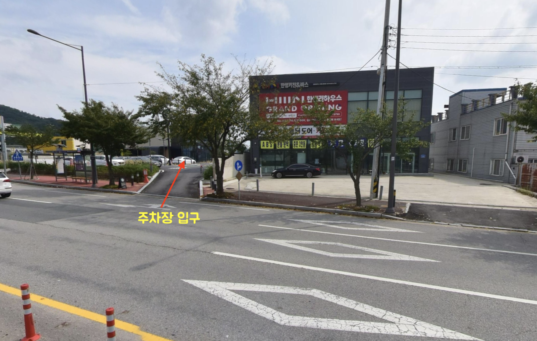스타벅스 주차장 입구는 바로 한샘키친&바스 바로 지나서 있답니다.